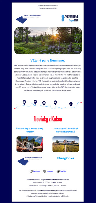 Emailová kampaň centrály cestovního ruchu